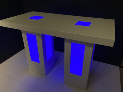 Unieke statafel met colorLED-verlichting. De set is hoogglans wit afgelakt. Wilt u graag een andere kleur, uiteraard is dit mogelijk.